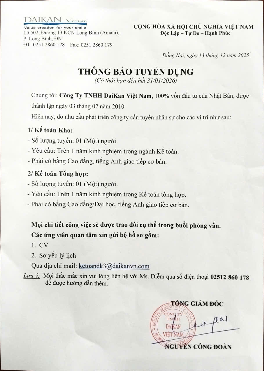 Chúng tôi: Công Ty TNHH DaiKan Việt Nam, 100% vốn đầu tư của Nhật Bản,